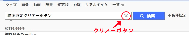 このインプット欄になにか入力すると、クリアーボタン「X」が右側に表示されます。