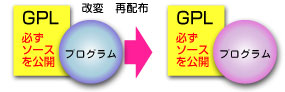 GPLのOSSの場合、特に注意が必要。 GPL以外の一般的なOSSの場合、オリジナルの著作権表示を残すことで、オリジナルのプログラムを組み込んで開発したものを、開発者が独自の利用許諾を付けて再配布できるものがあります。 しかし、GPLのものを組み込んで開発した場合、再配布するプログラムは、利用許諾条件を必ずGPLにしなければなりません。 それは、その「ソースコードを必ず公開しなければならない」ことを意味します。